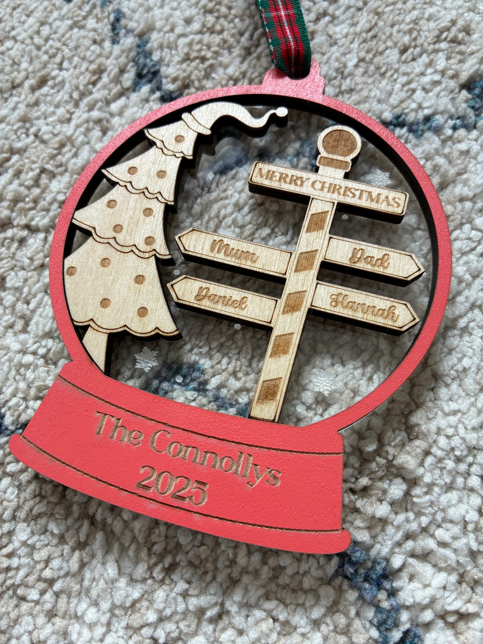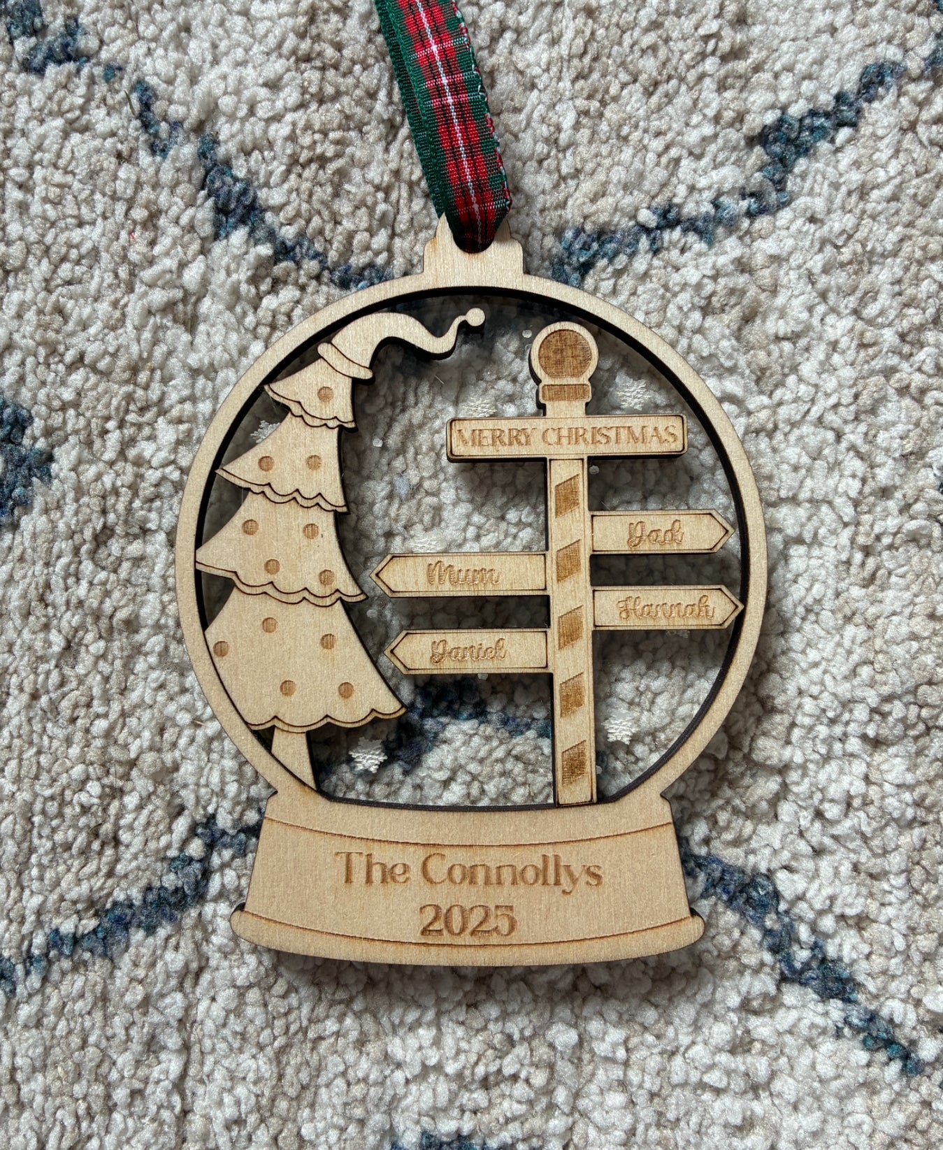 A Christmas decoration for the whole family. Add up to 11 names plus your family name & year.