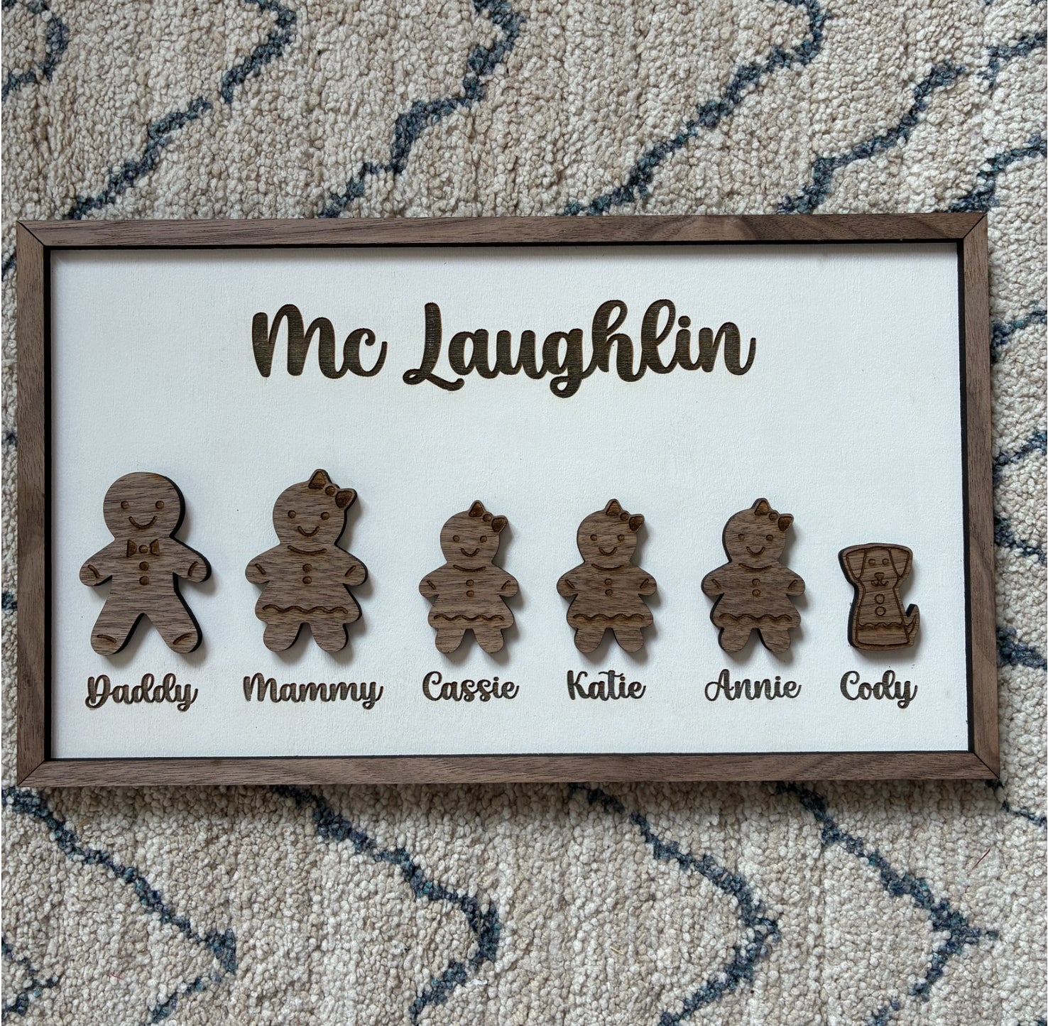 Add our wonderful handcrafted gingerbread Christmas frame to your home this festive season. Add the whole family including the dog & cat.